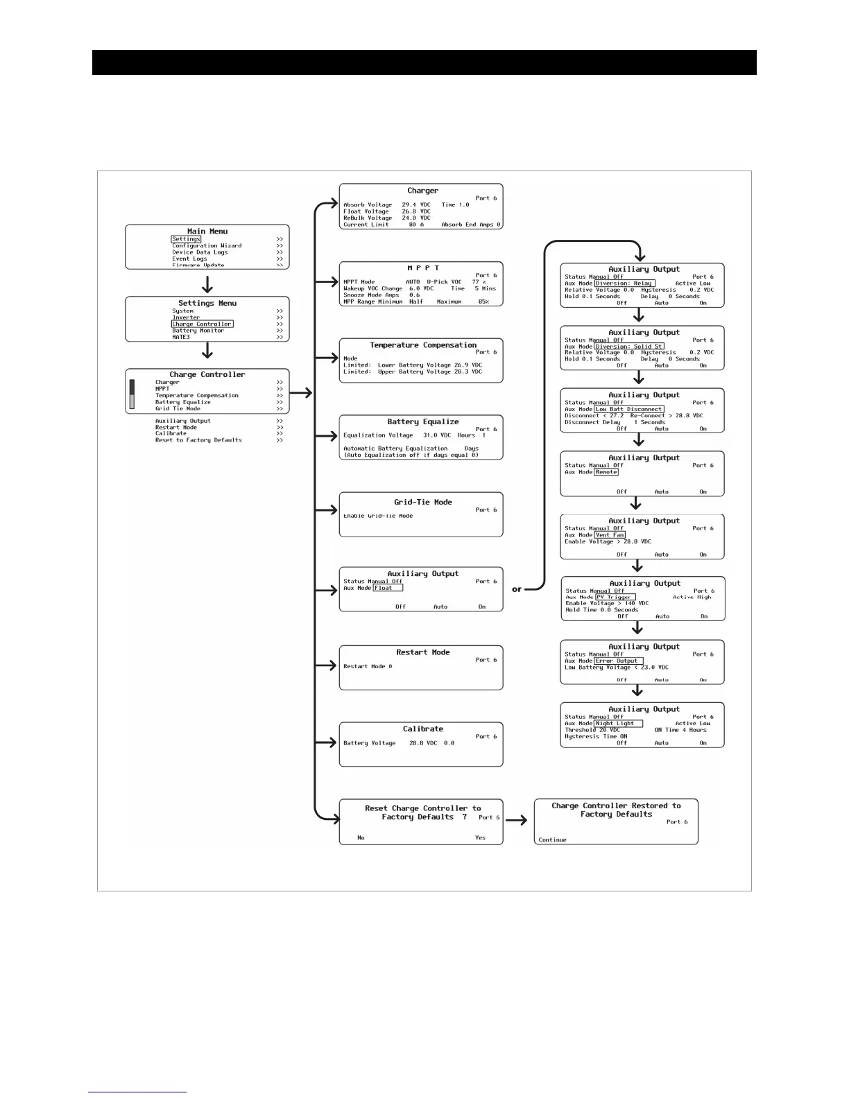 Figure 60 shows the MATE3 menu structure for adjusting the FLEXmax charge controller settings.