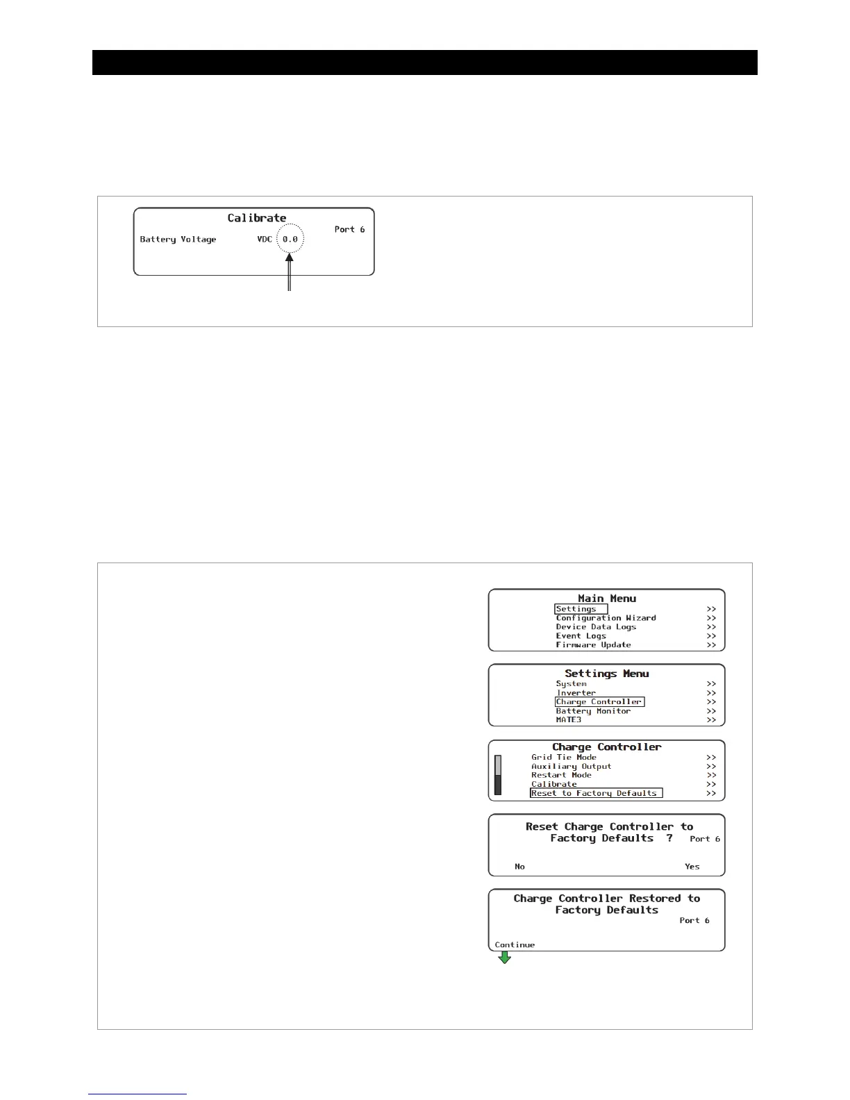 NOTE: Calibration does not change the actual voltage of the charge controller, only the reading of