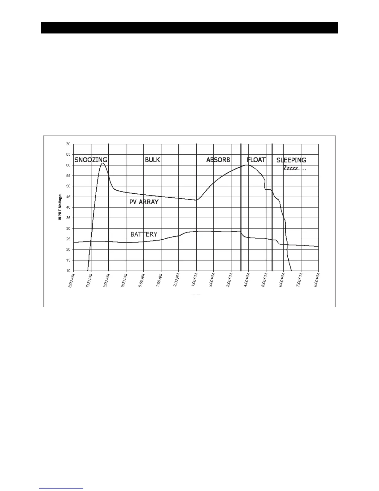 array throughout a typical day, and the battery voltages (by stage) during the same times.