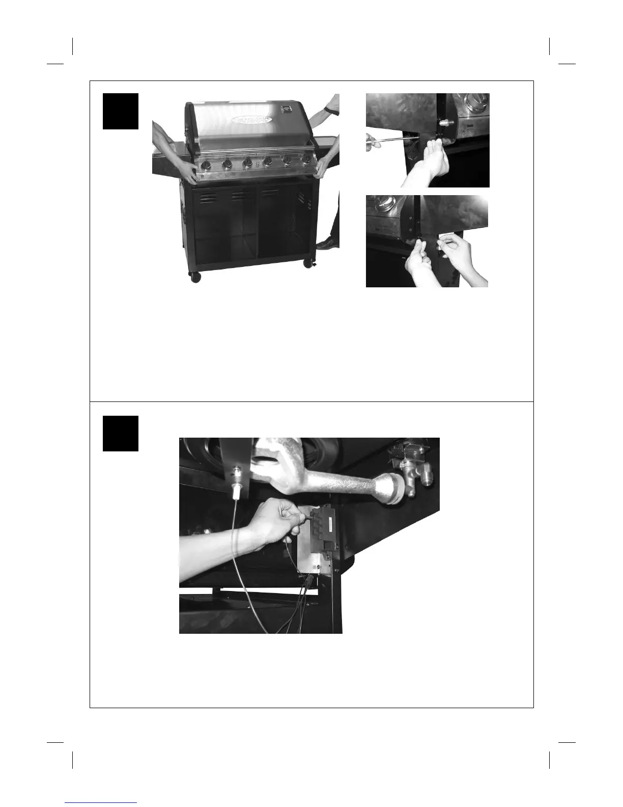 Carefully lay the Barbecue Body (B1) onto the supports on the cabinet. WARNING: DO NOT RELEASE