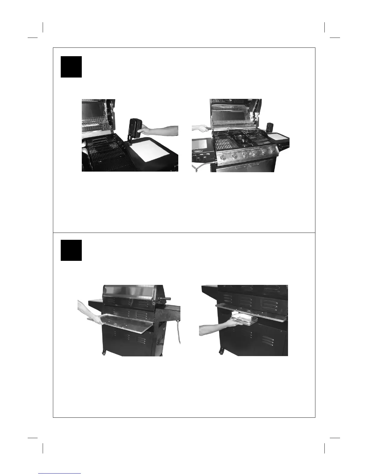 Slide the Drip Tray (B6) into place underneath the barbecue body.