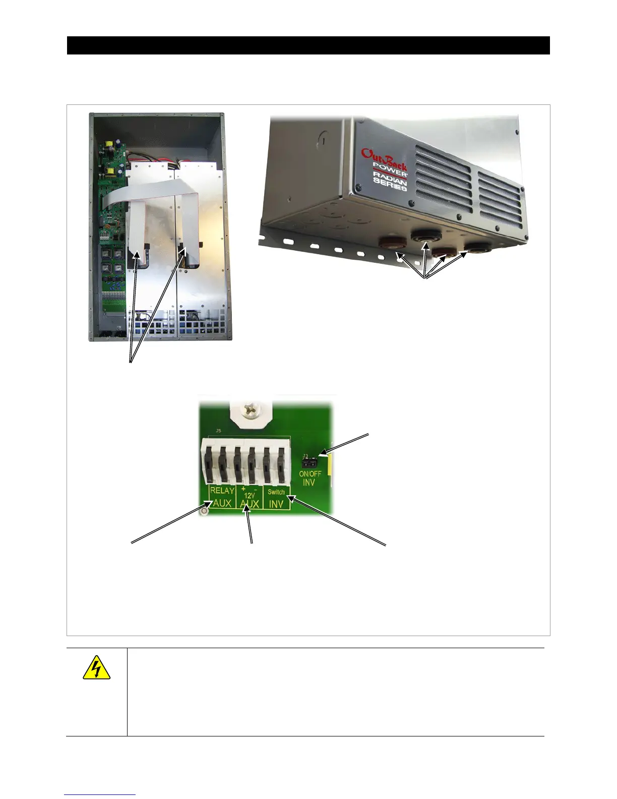 the Radian service manual.) The cables must never be removed until all power has been disconnected from