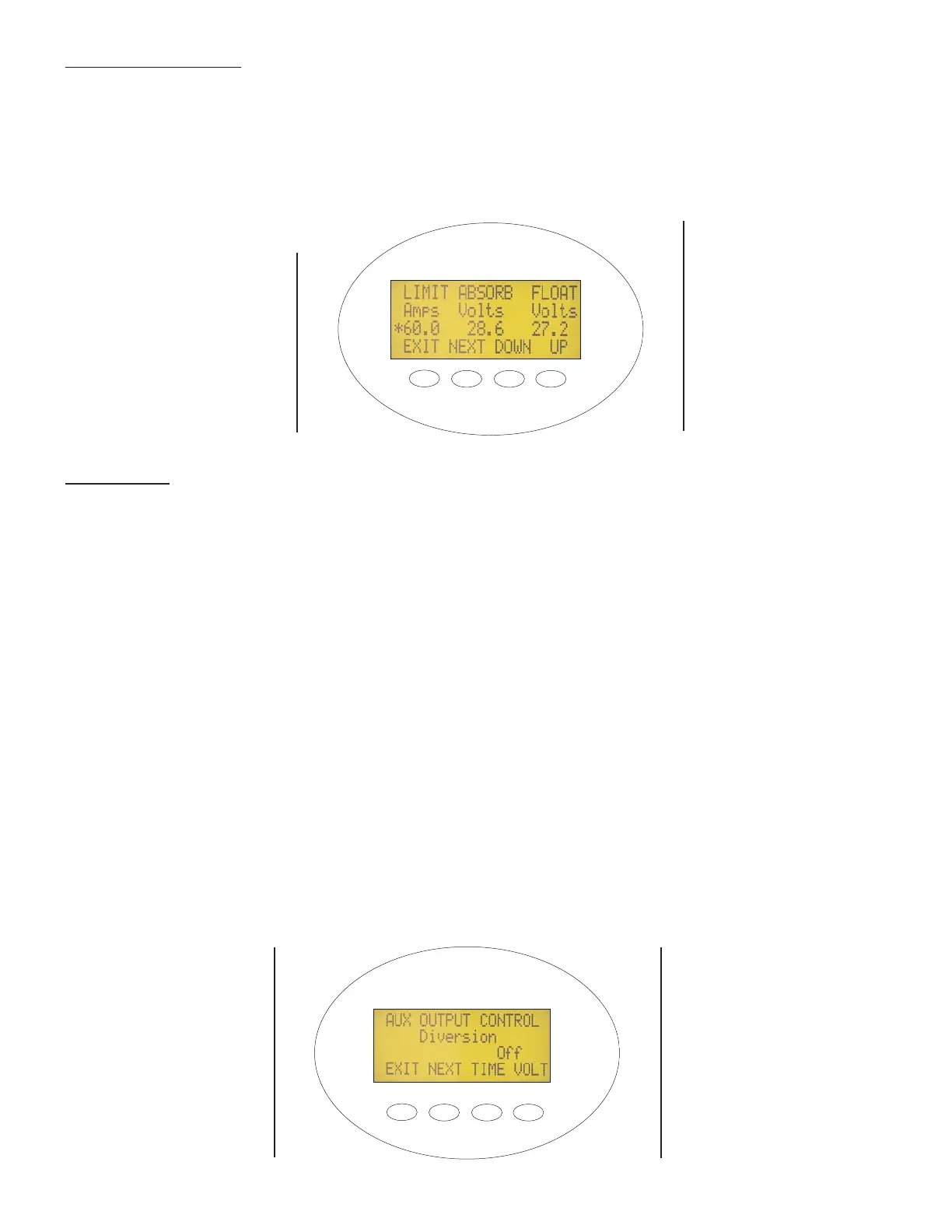 voltage is set, and can be user modified. The default ABSORB and FLOAT Volts setpoints are based on typical lead