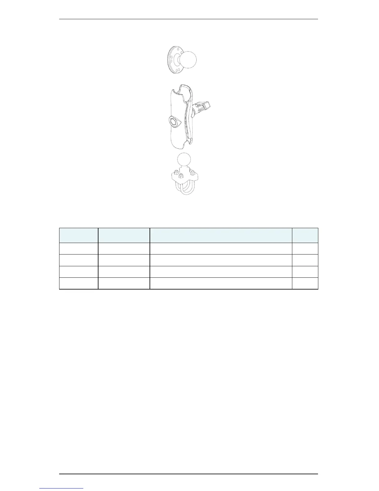 For the Ram ball mount assembly, Figure 1-3 provides a parts/connection diagram and