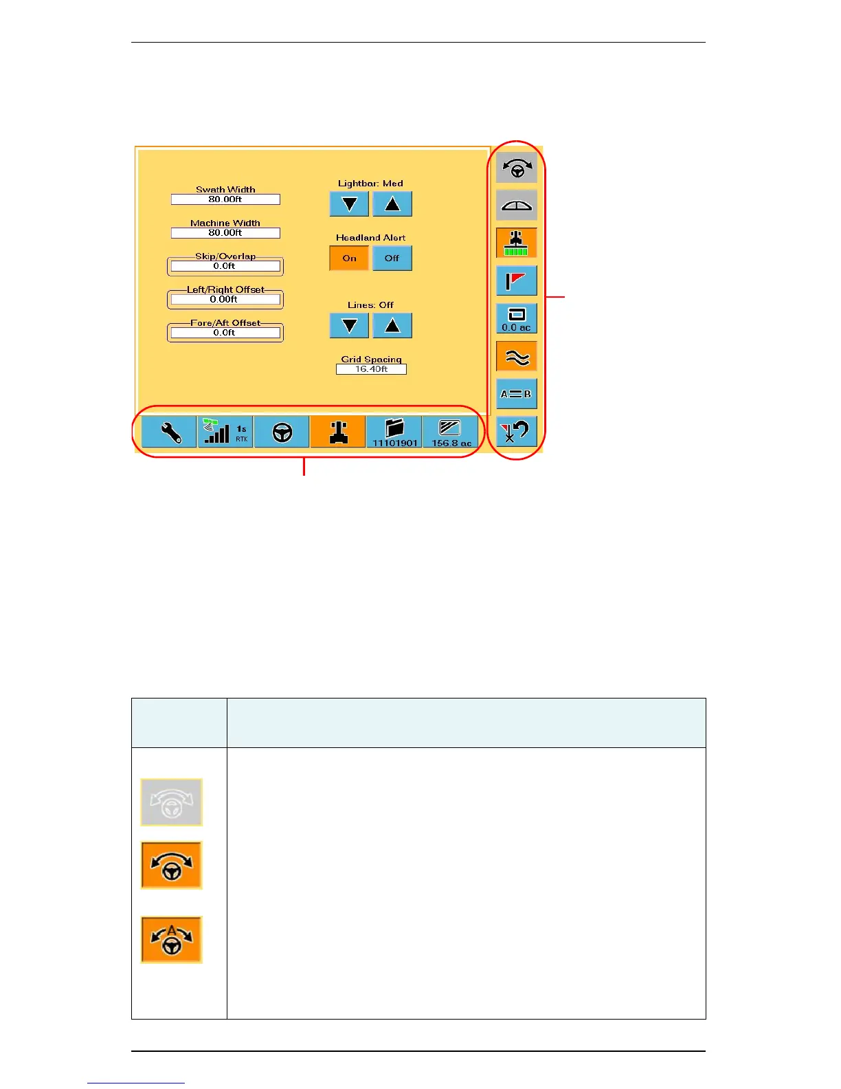 Control buttons allow you to perform such tasks as engaging automated steering,