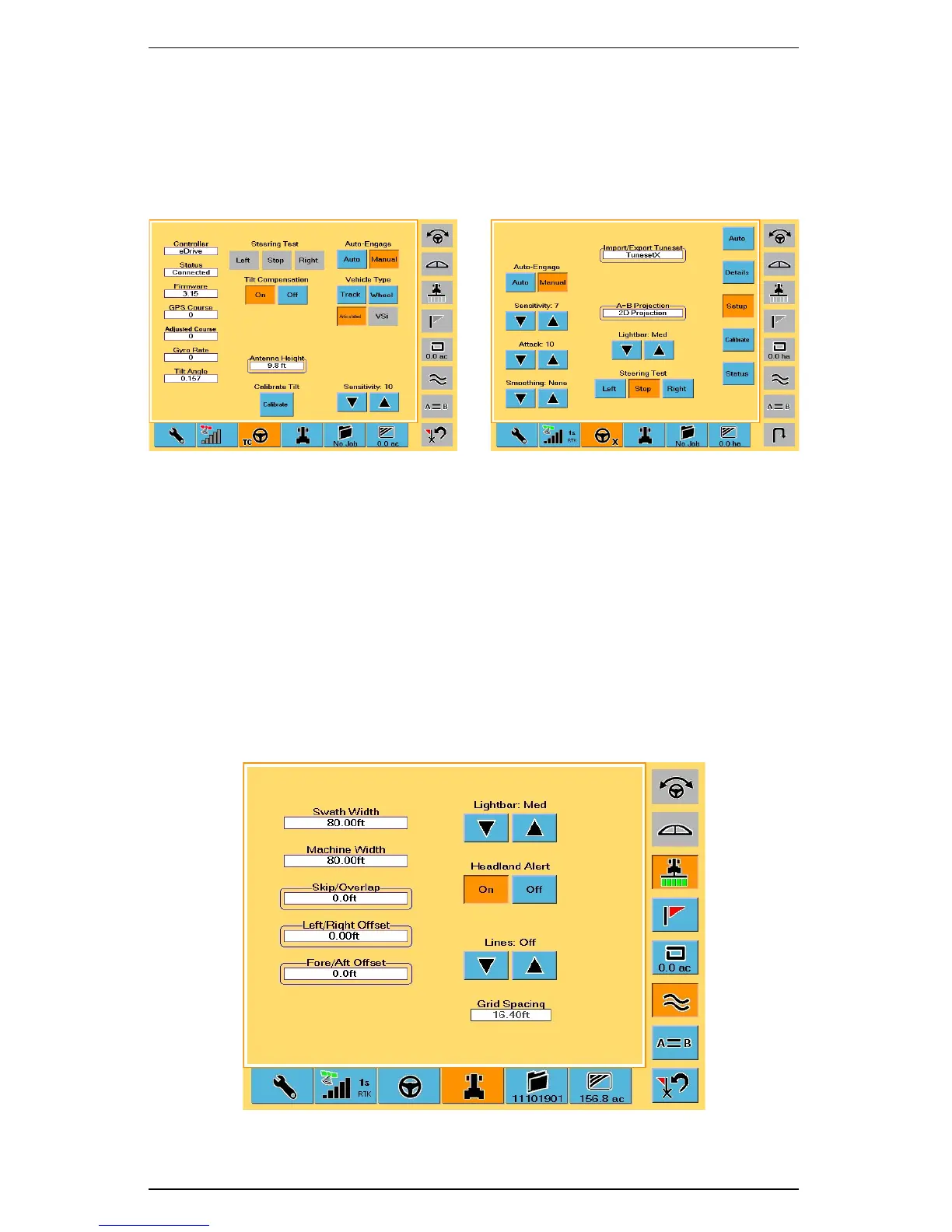 The Vehicle screen (Figure 2-7) has various settings related to the machinery and