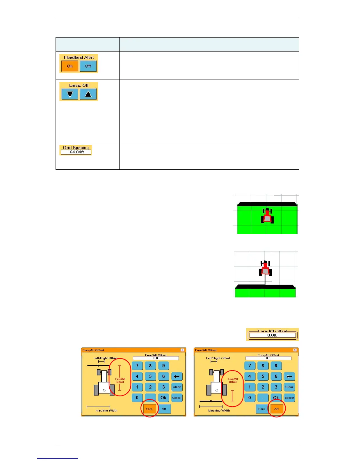 1. On the Vehicle screen touch the Fore/Aft Offset button.