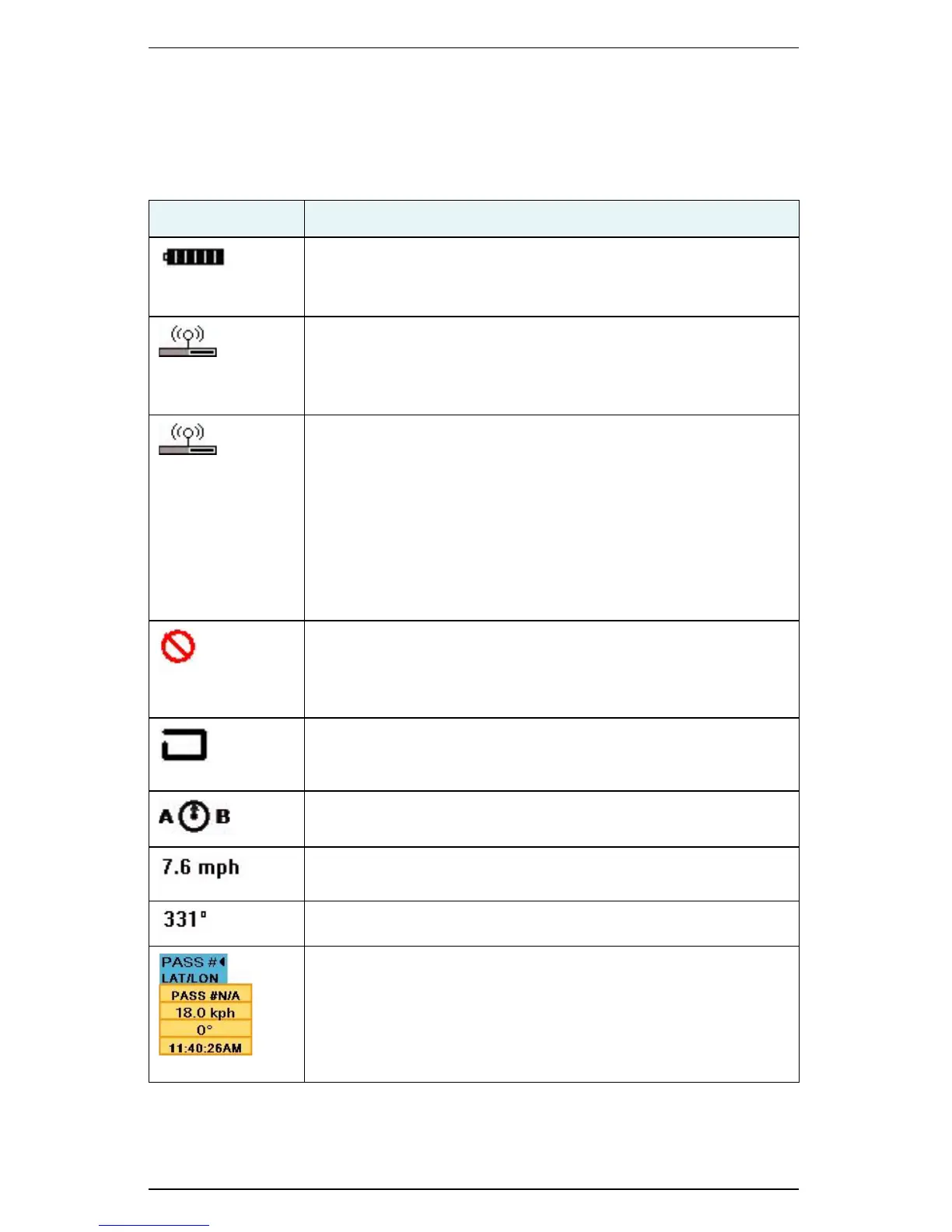 The S3 has several operational status indicators that appear on the Map screen or on