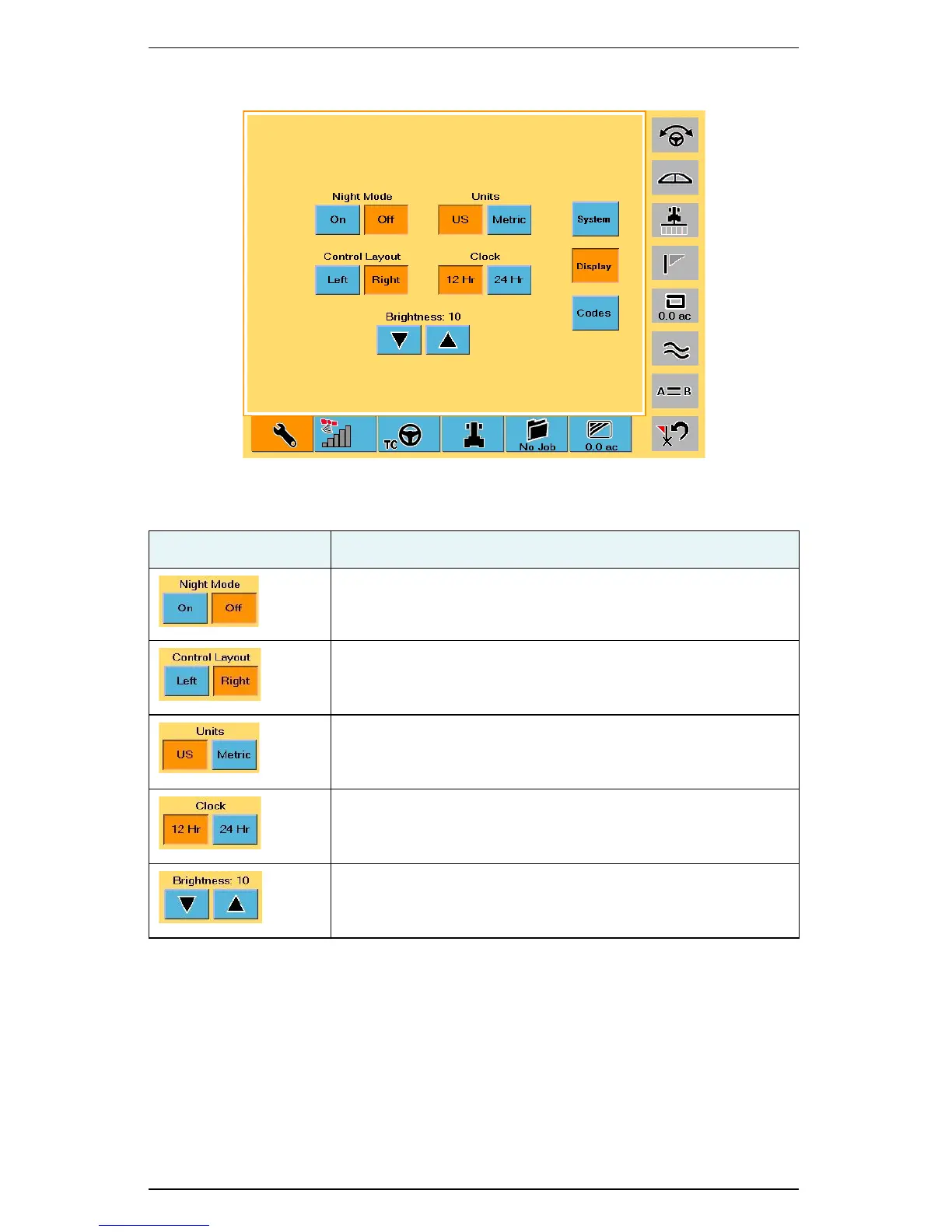 Adjust the display brightness—range is 1 (dim) to 10 (bright).