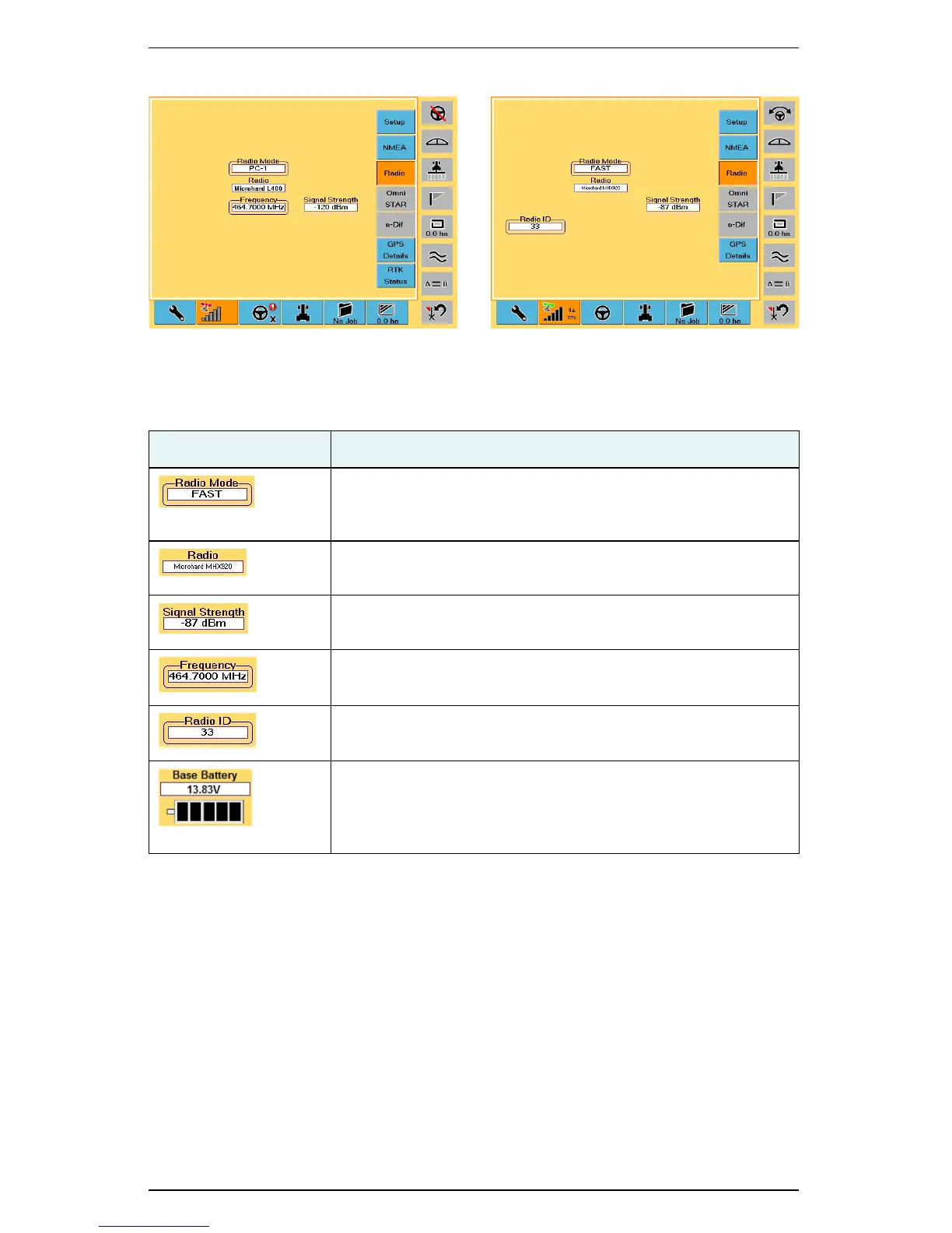 Radio battery voltage and charge level (5 bars = 100%, 4 bars =