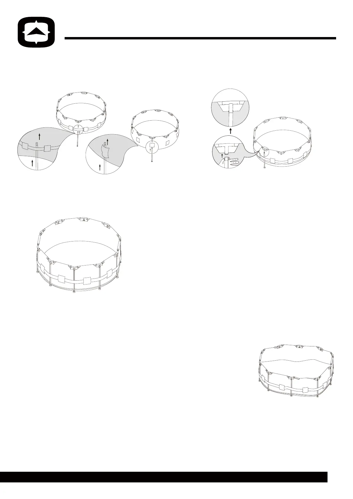 Tips: For smaller pools without a belt, slide the vertical legs up
