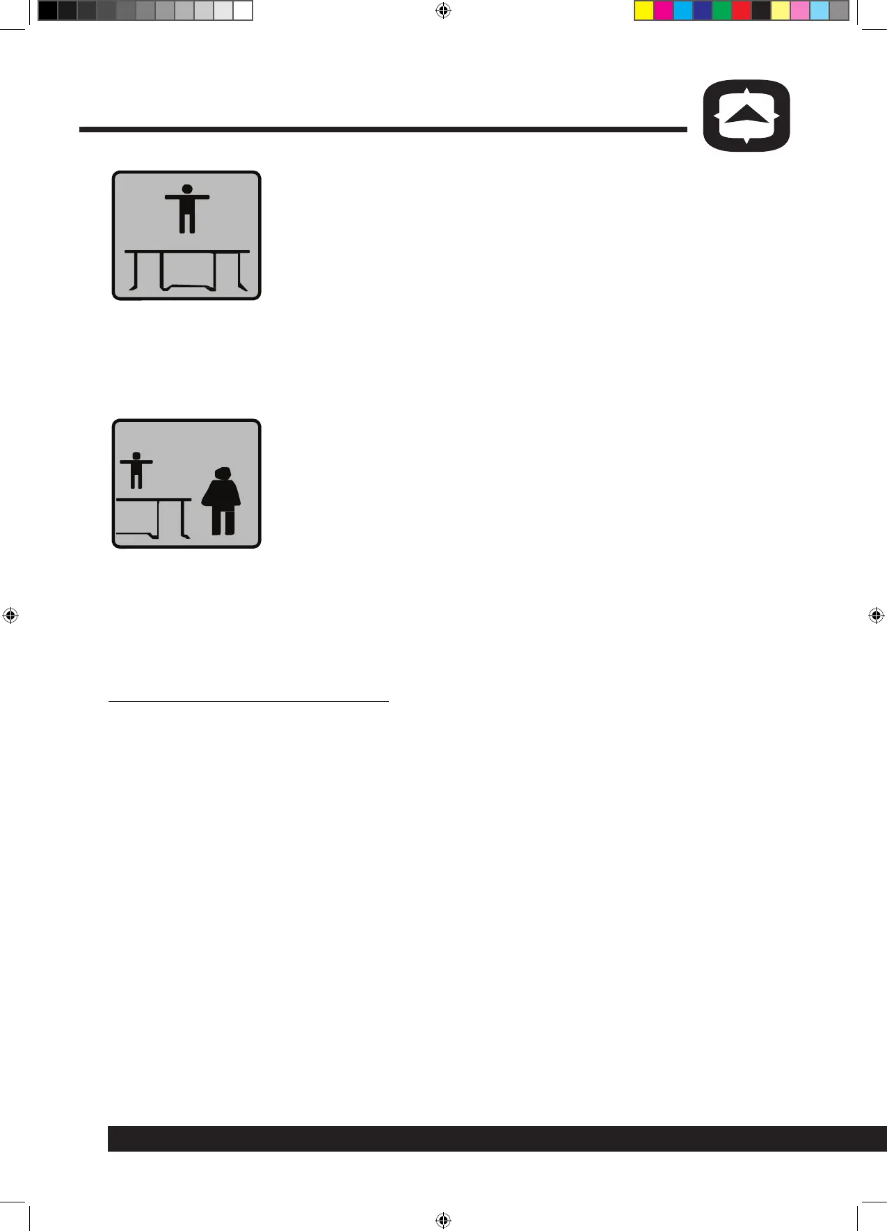 • To keep your balance, focus your eyes toward the perimeter of the trampoline