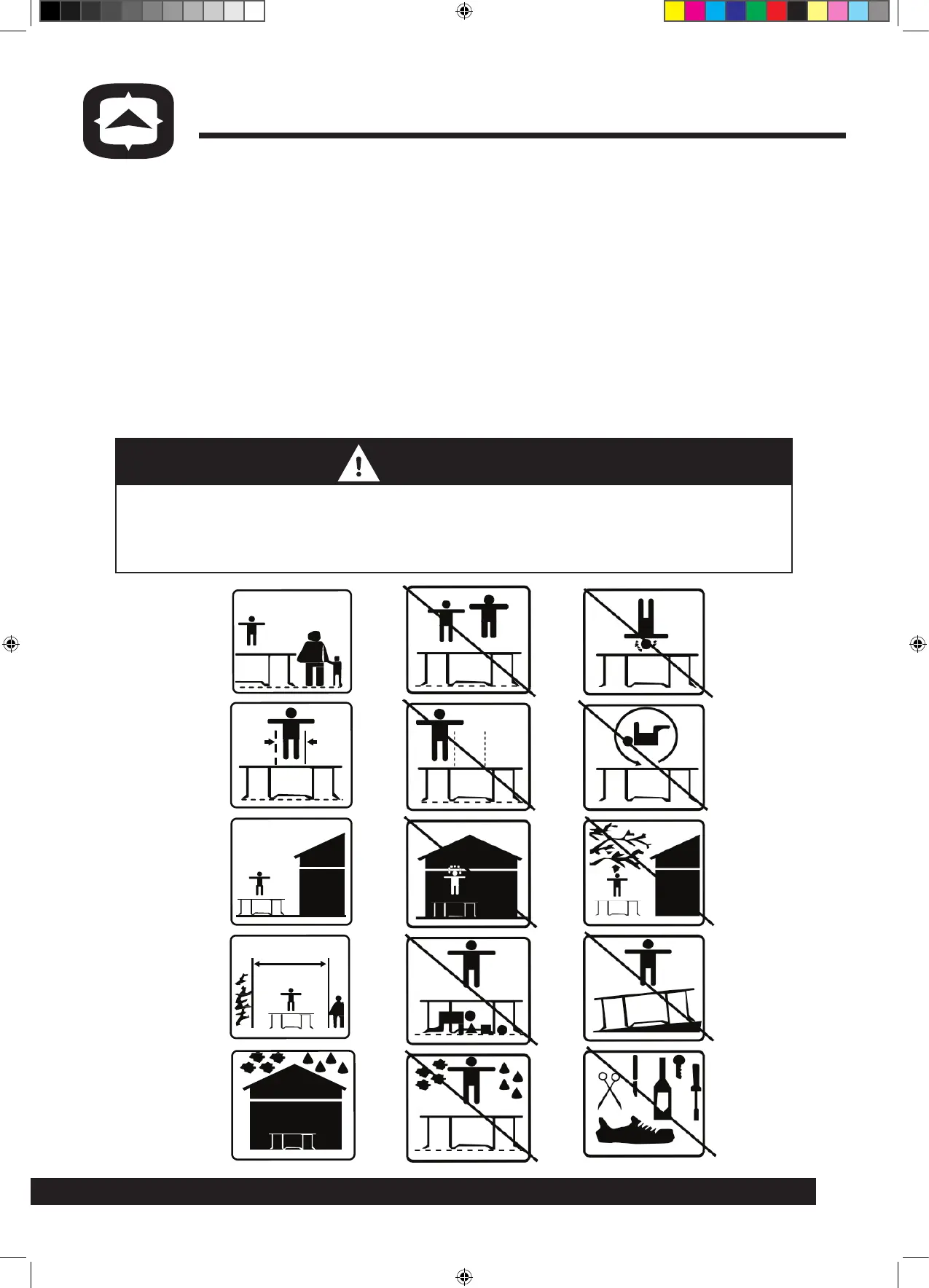 • This enclosure net is only to be used with a trampoline of a size for which the