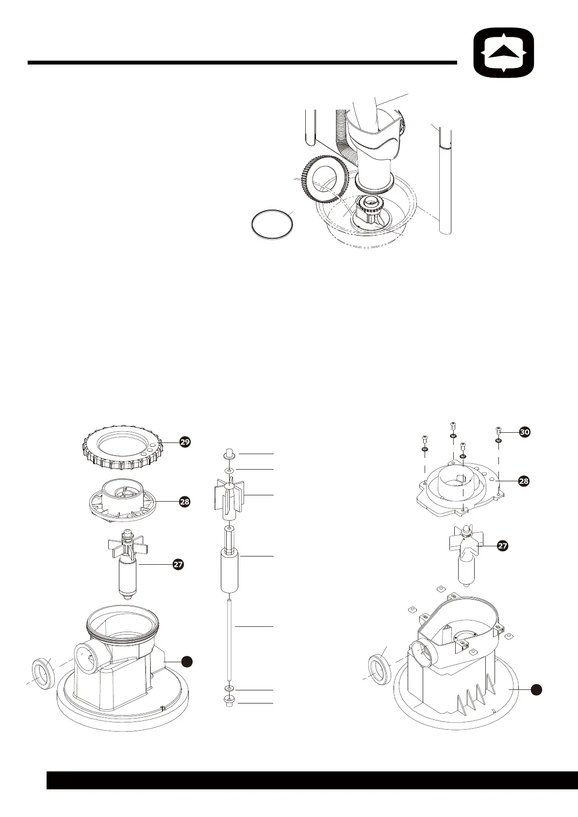 avec le bouchon supérieur de l’arbre, ensuite serrez avec l’écrou de verrouillage du couvercle de volute