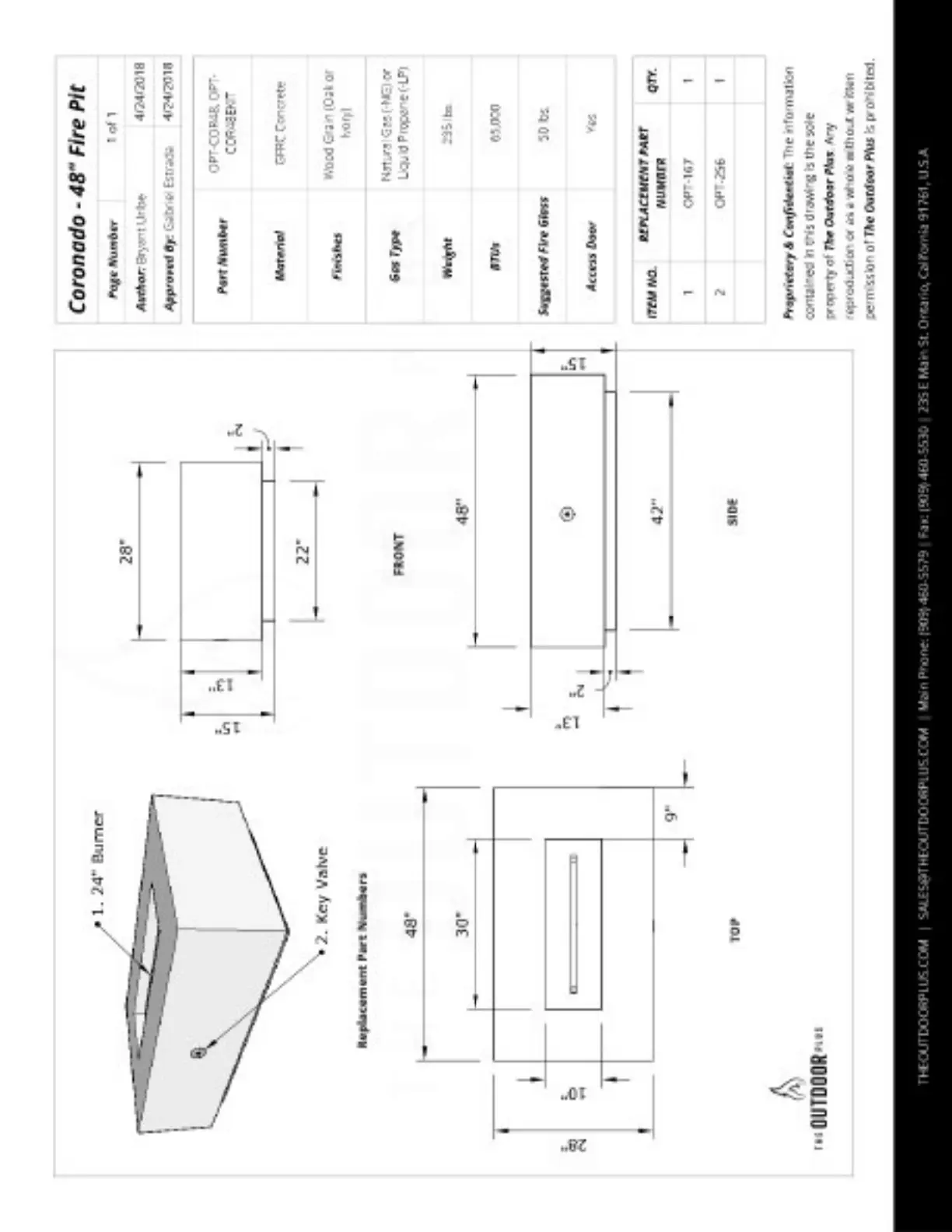 Outdoor Plus CORONADO - Specification Sheets;Part Replacements
