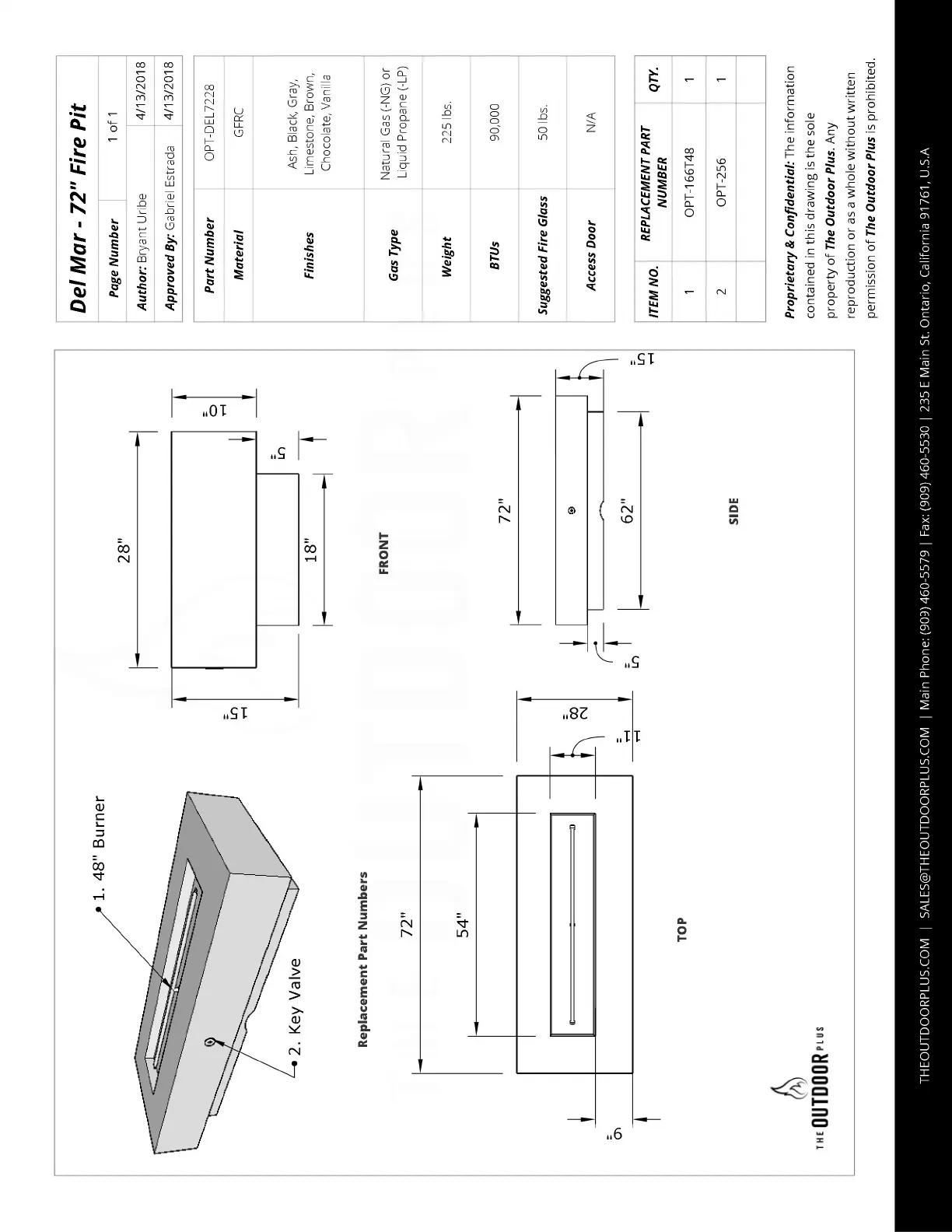Outdoor Plus DEL MAR - Specification Sheets;Part Replacements