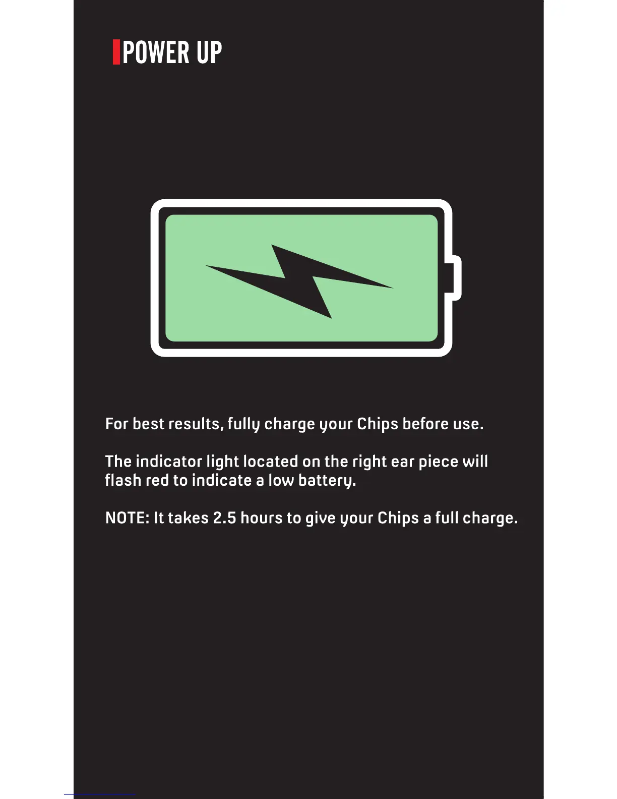Outdoor Technology Chips - Power Up and Charging; Charging Instructions
