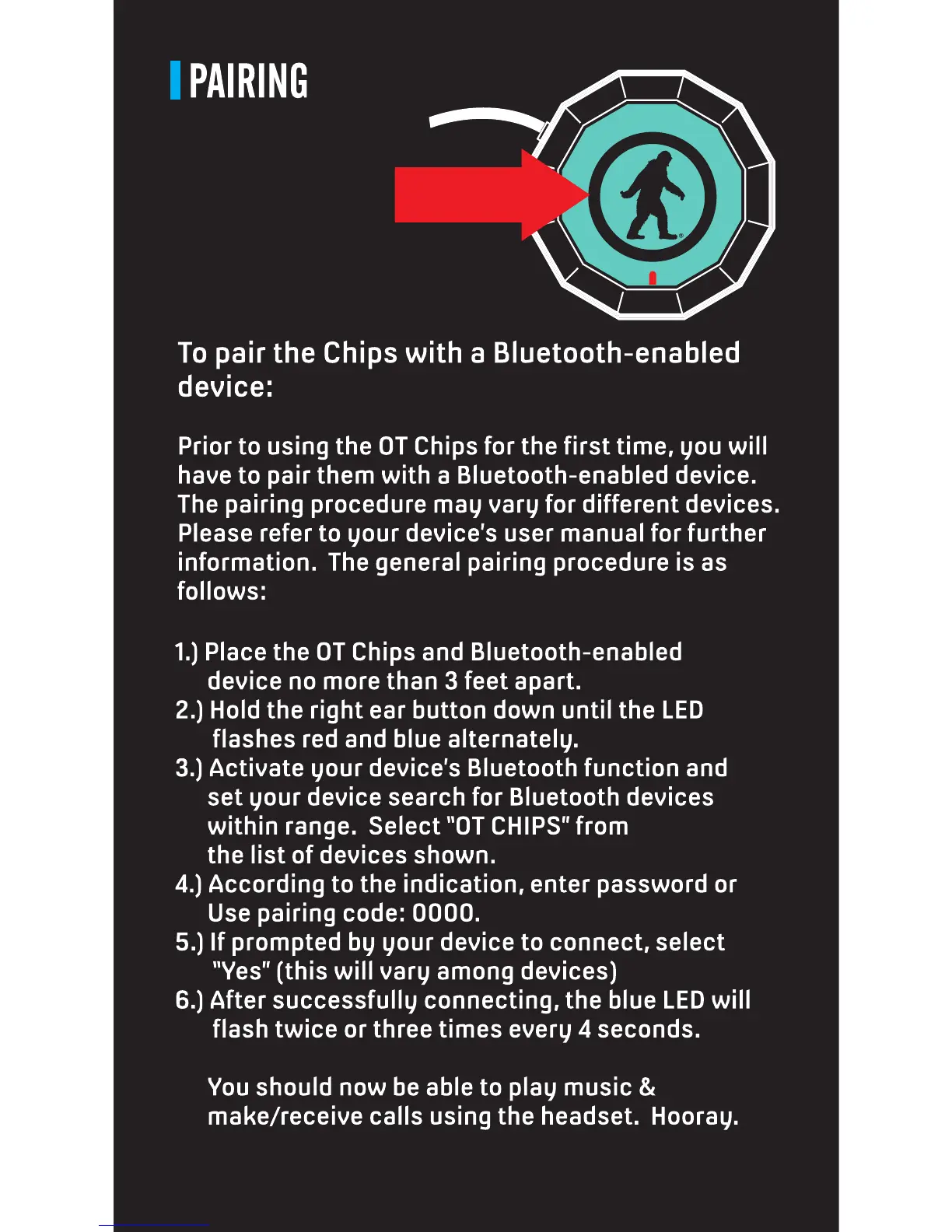 Outdoor Technology Chips - Bluetooth Pairing; Pairing Procedure