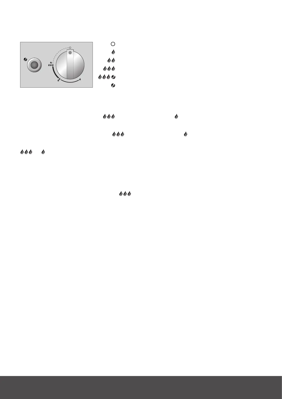 The large ring burner achieves its highest power at the setting and its lowest power at the setting. It is designed for applications in the