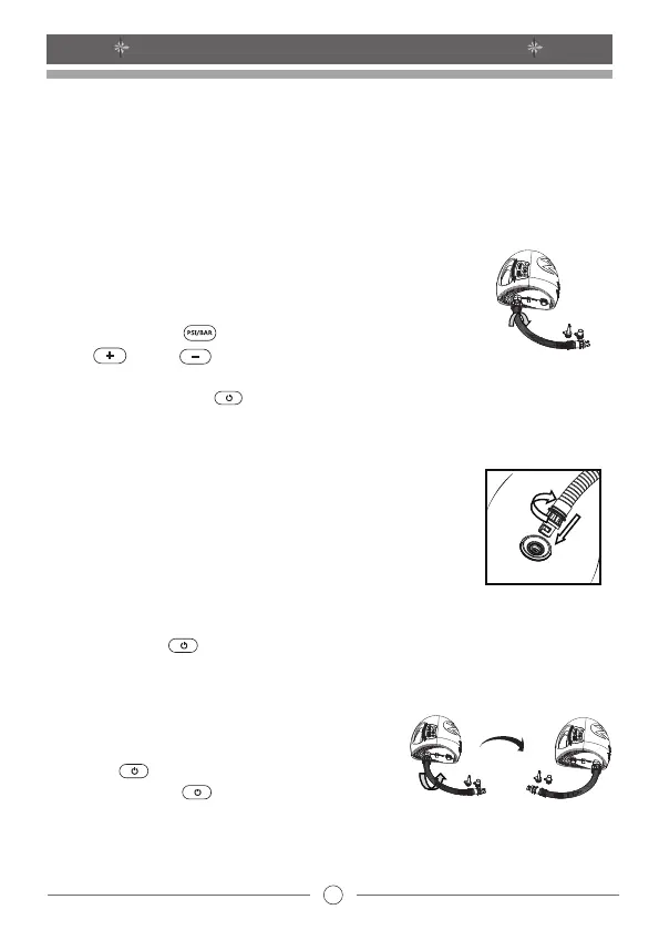 ・圧力が設定値に達すると、エアポンプは自動的に空気入れを停止します。