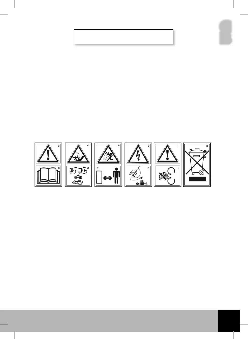 j. Do not use the lawnmower if the grass bag and/or the shield/deflector are not in place.