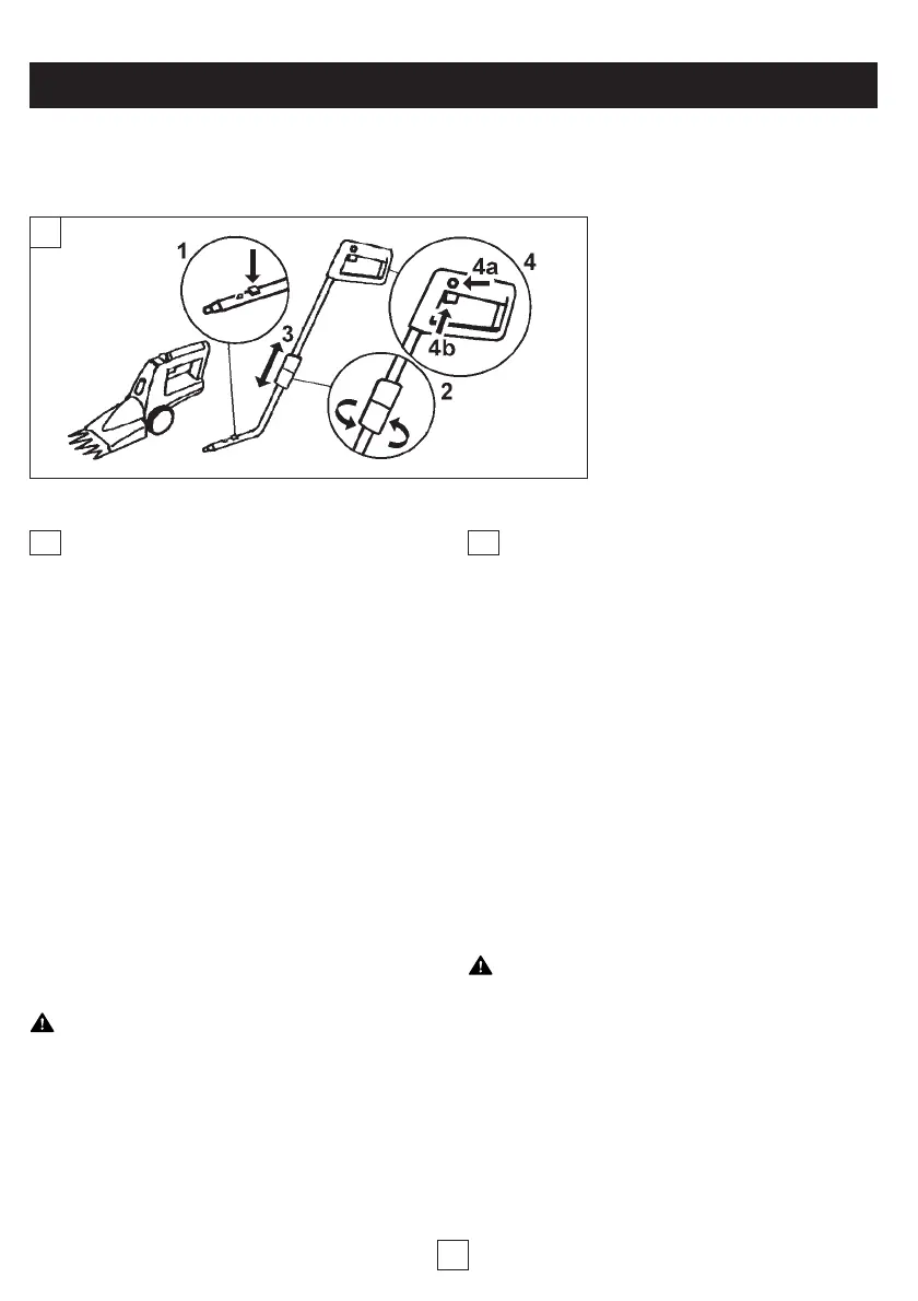 • Pour fixer le manche télescopique, enfoncez