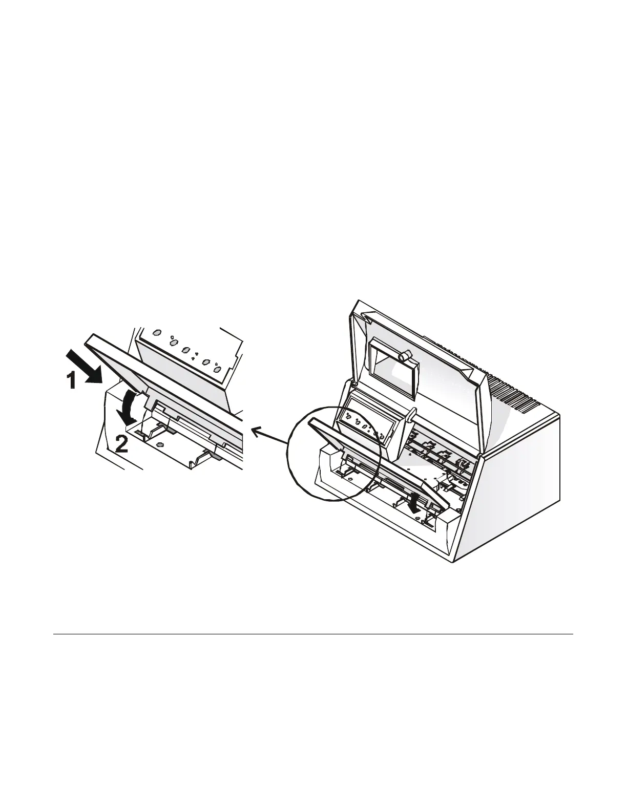 3. Holding the paper stand oblique insert the hooks into the printer clefts.