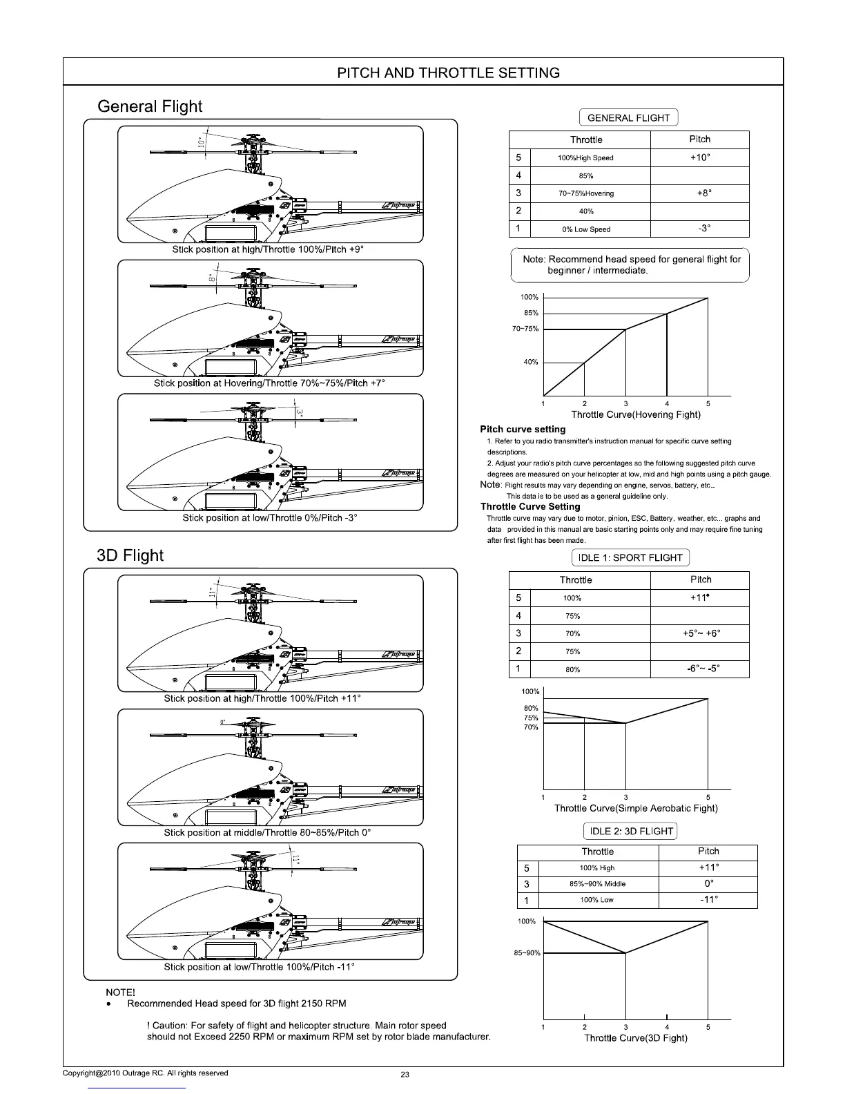 Outrage RC Fusion 50 - Pitch and Throttle Settings; General Flight; 3 D Flight; Throttle Curve Setting
