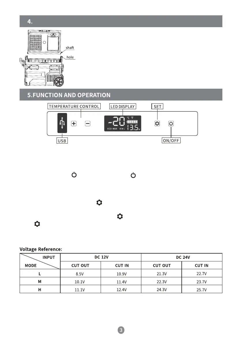 a while to reach the set temperature. Setting range: -20-20°C (-4-68°F).