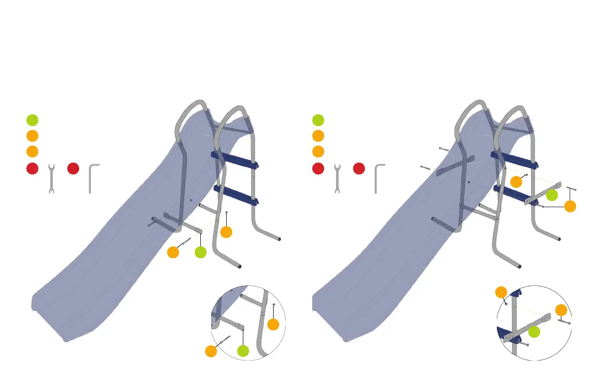 leg support and short leg eyelets. Screw them all together with the nuts (C)