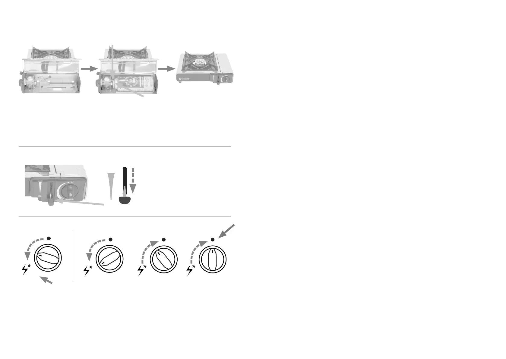 a.) Tænd for brænderen ved at dreje betjeningsknappen mod uret hen mod IGNITION (Antændelse), til der