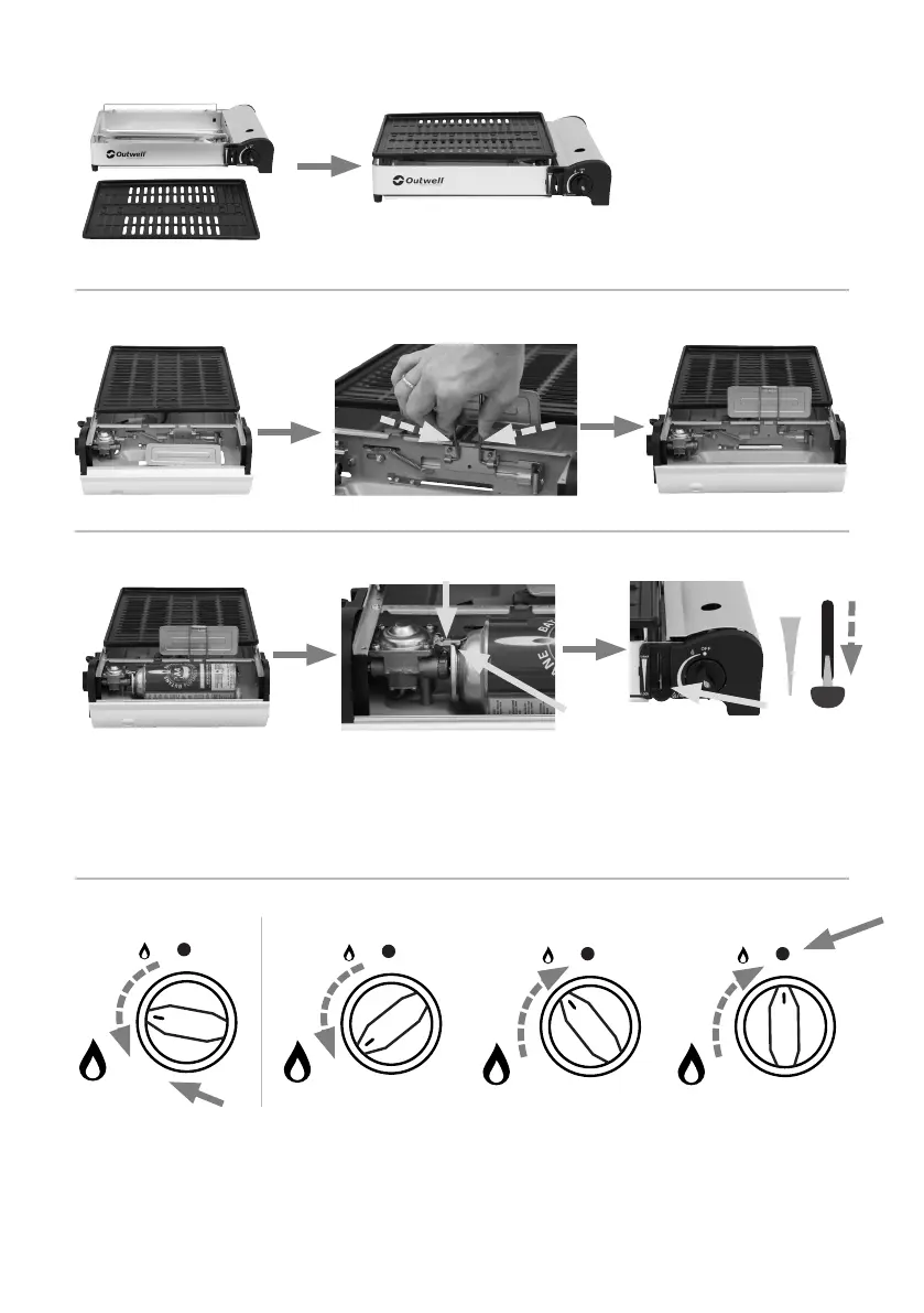 c.) For å minske flammen dreier du gassregulatoren med urviserne mot symbolet med en liten flamme.