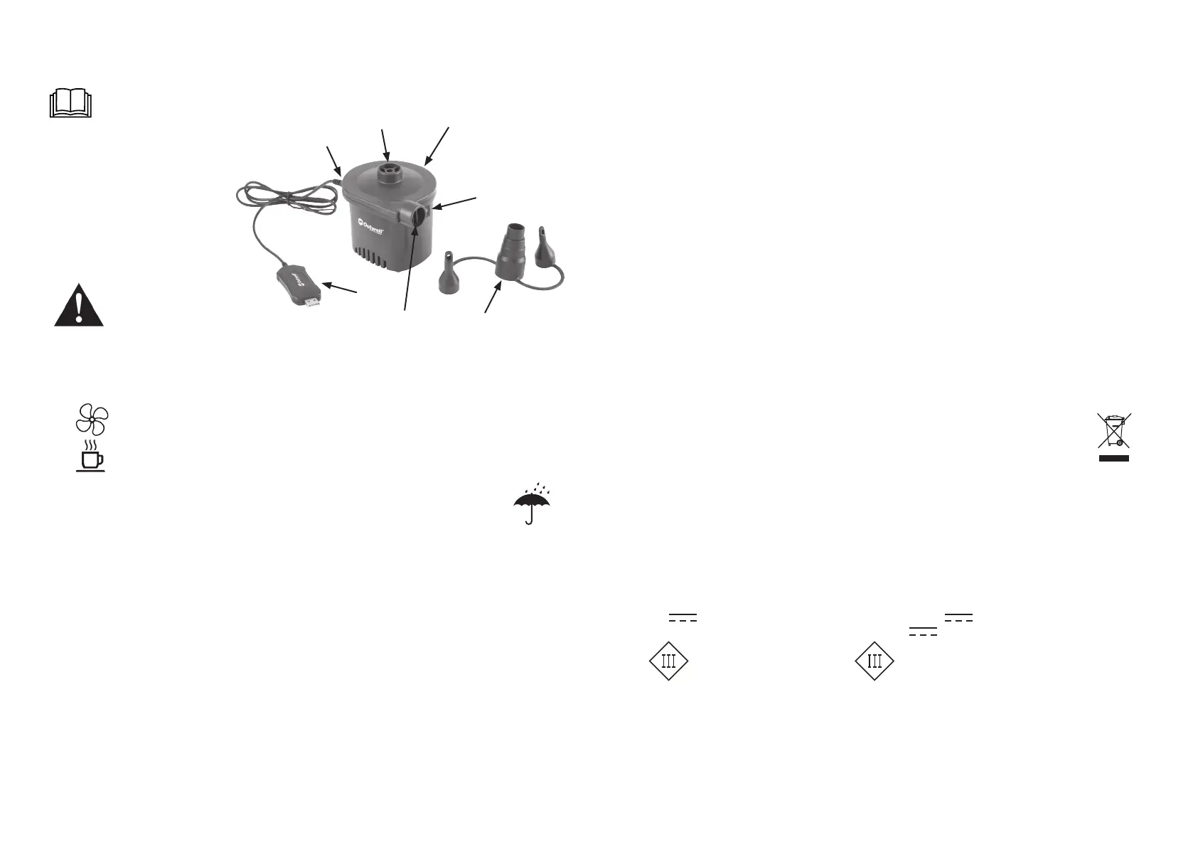 pluie et la stocker à l’intérieur. Ne pas utiliser la pompe à air dans un environnement humide.
