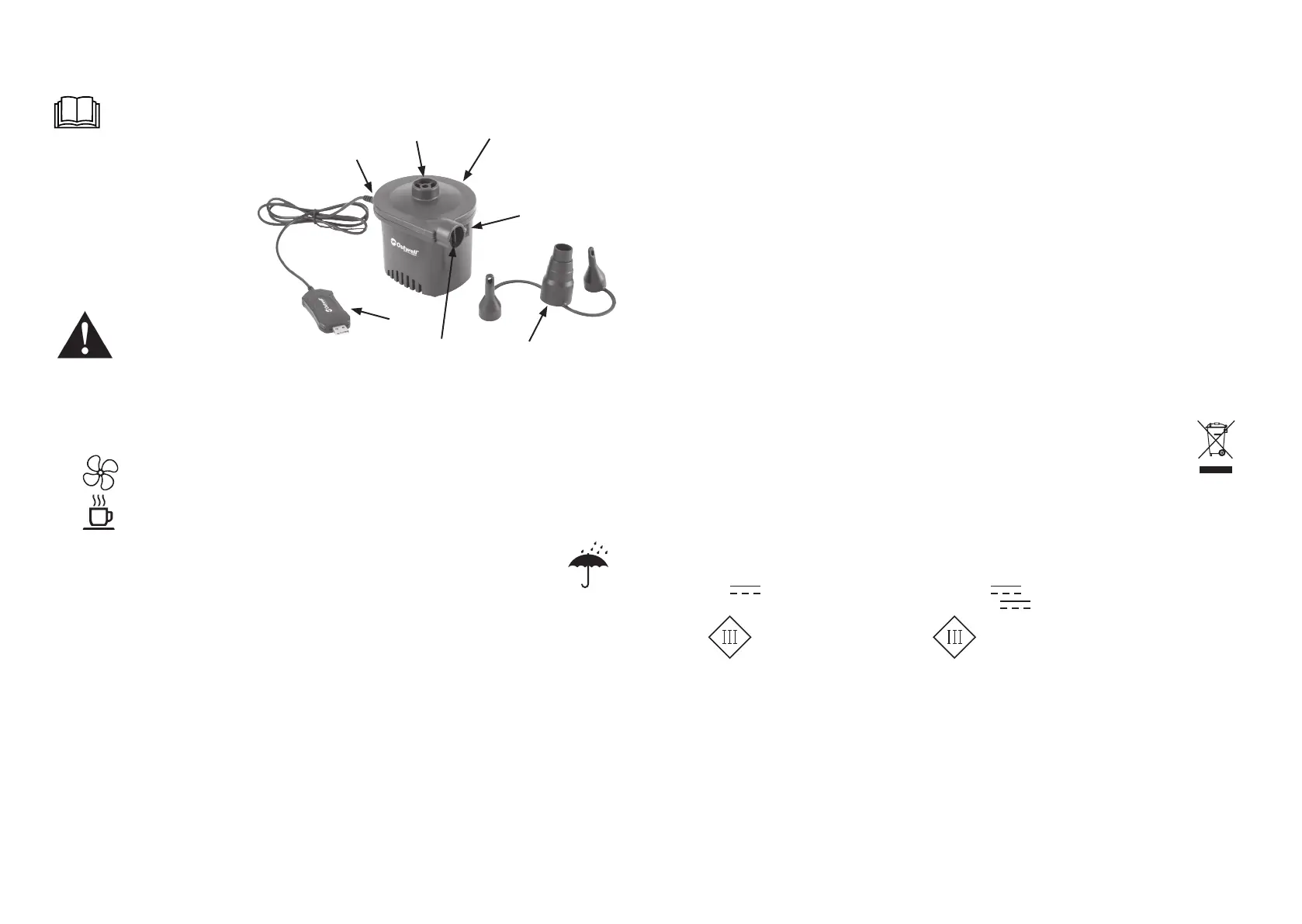 de pomp nooit in water of andere vloeistoen onder. Gebruik de pomp niet met natte handen.