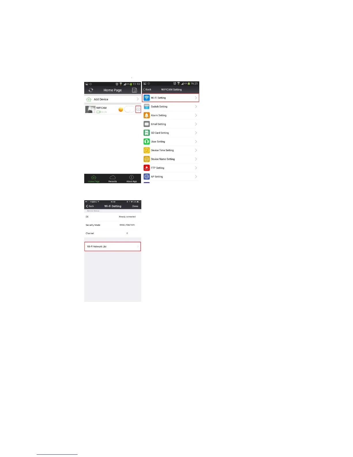 located to the right of “WIFICAM”. This will now take you to the “Setting” page