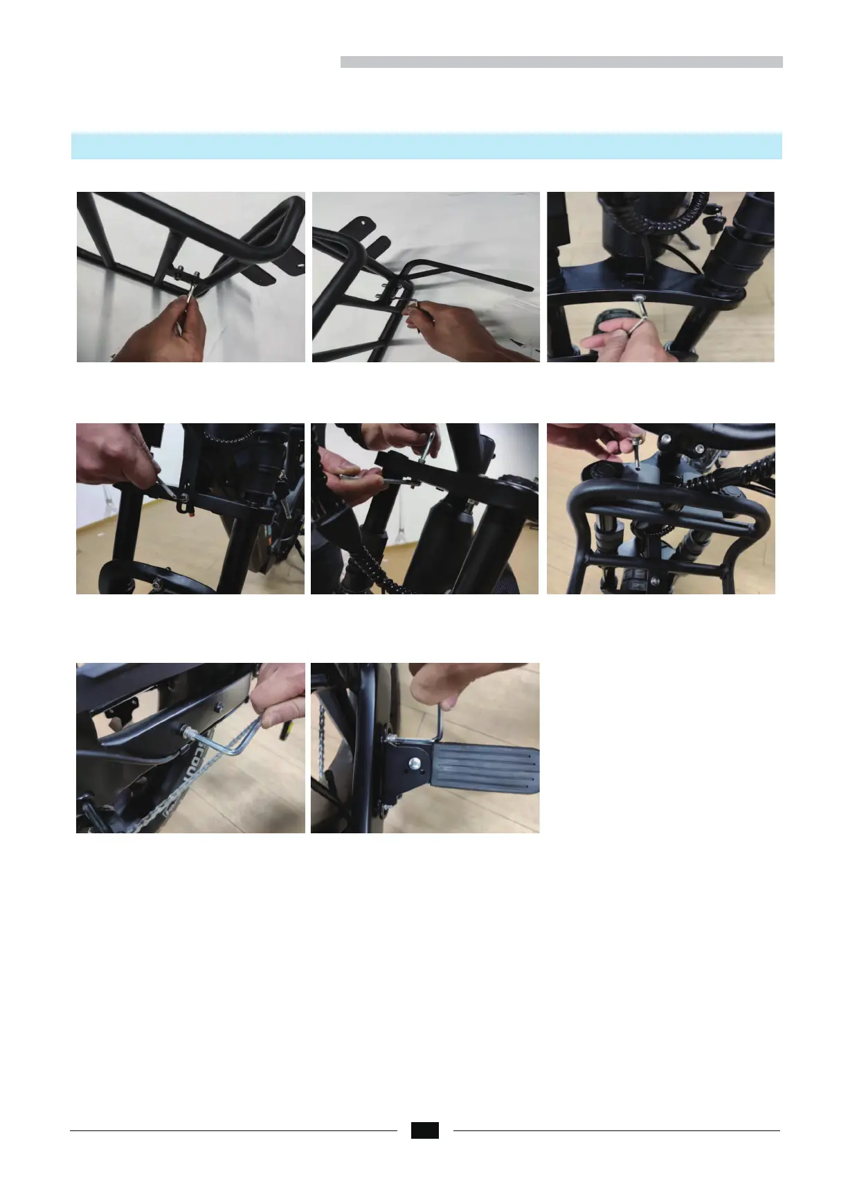 1: Remove the screws 2: Remove the front fork screws 3: Assemble the bracket