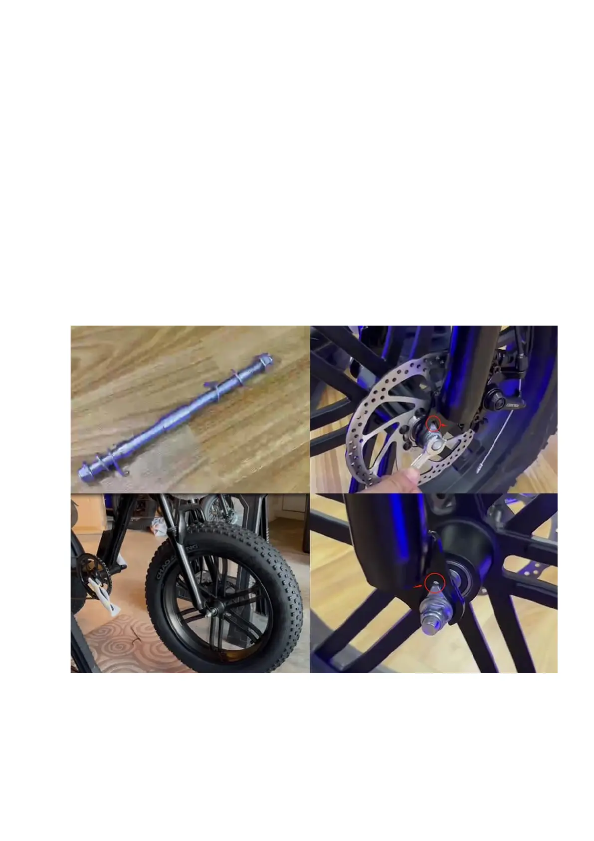 Install disc brake on the front wheel; Insert the skewer through the front wheel axle from the side of
