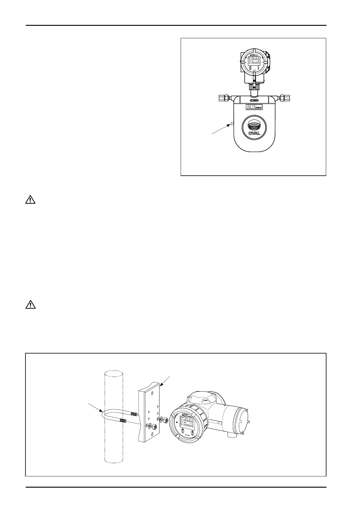 (2) Secure the transmitter to a horizontal or vertical steel pipe 2 inches in nominal size using the U-bolt
