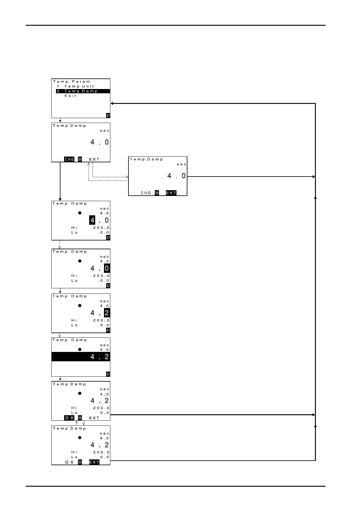 the temperature damping factor from "4.0" to "4.2" is covered in this section. A similar procedure applies