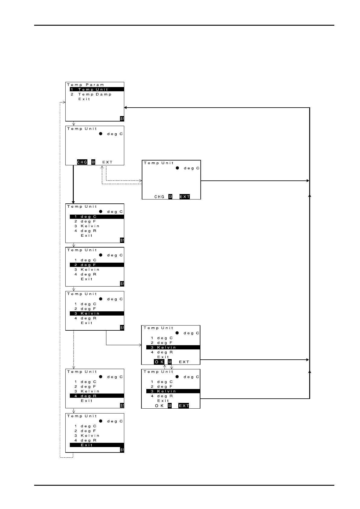 Move the cursor to the desired item, operate "SEL 1" to bring up temperature unit setup