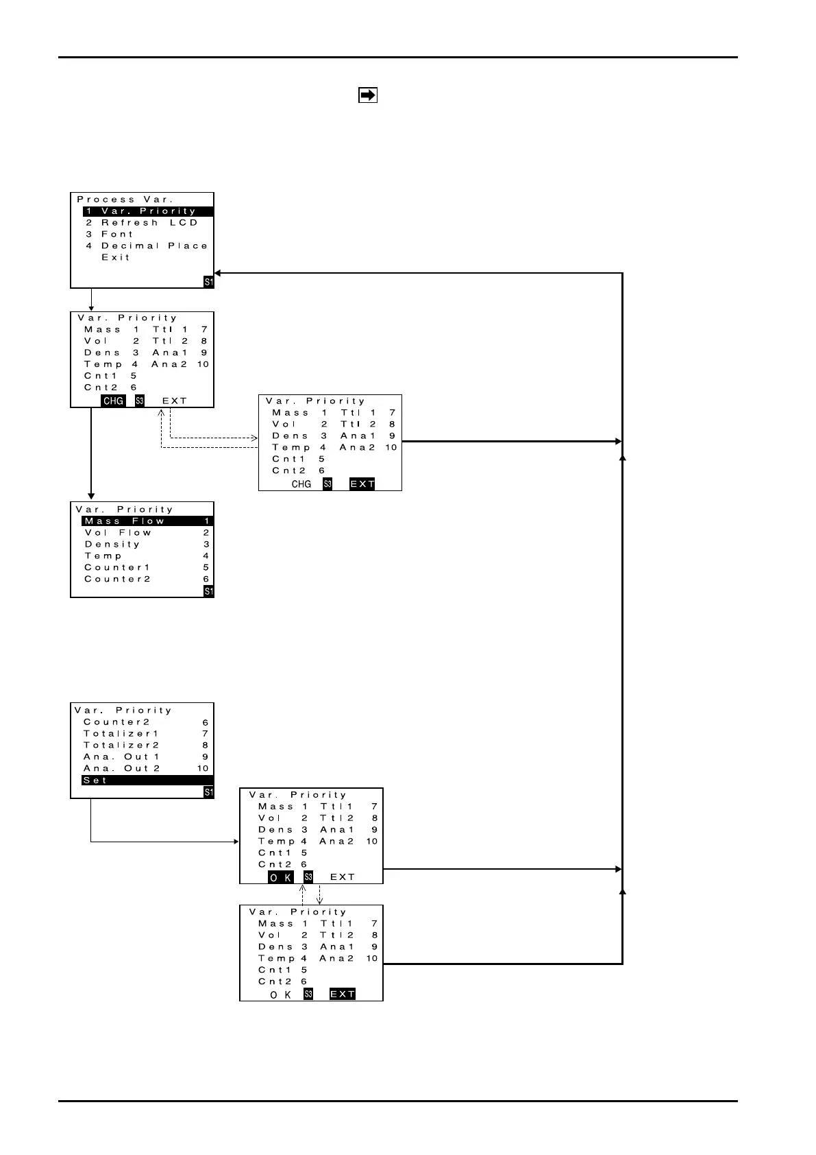 Firstly, proceed key operation to show the variables view priority setup (Var. Priority)