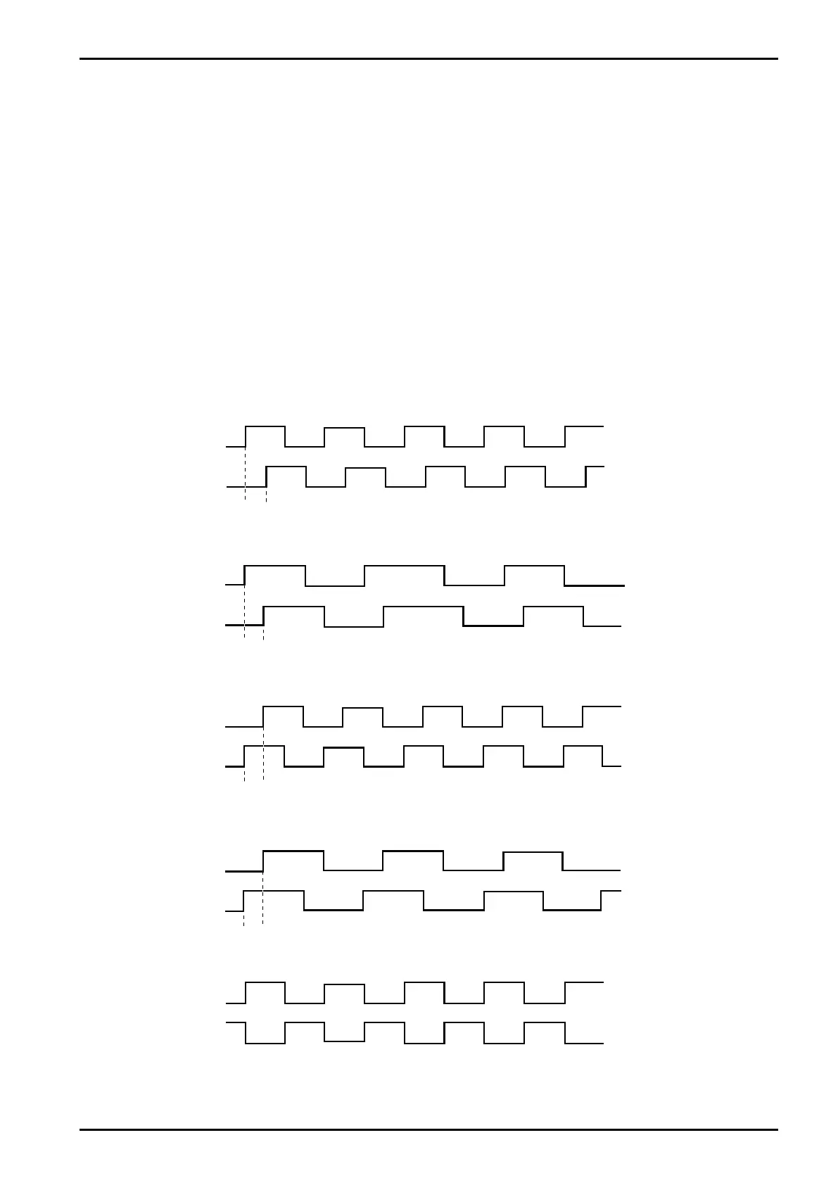 Pulse output 2 lags pulse output 1 by 90 degrees (1/4 of the period) when it goes into action.