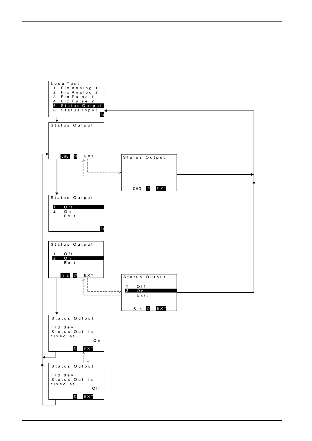 This section covers the procedure to provide a simulated status output in the setting ON. A similar