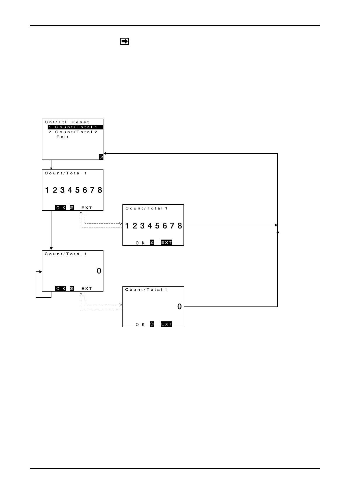 Firstly, proceed key operation to show counter/totalizer 1 reset (Cnt/Ttl Reset )