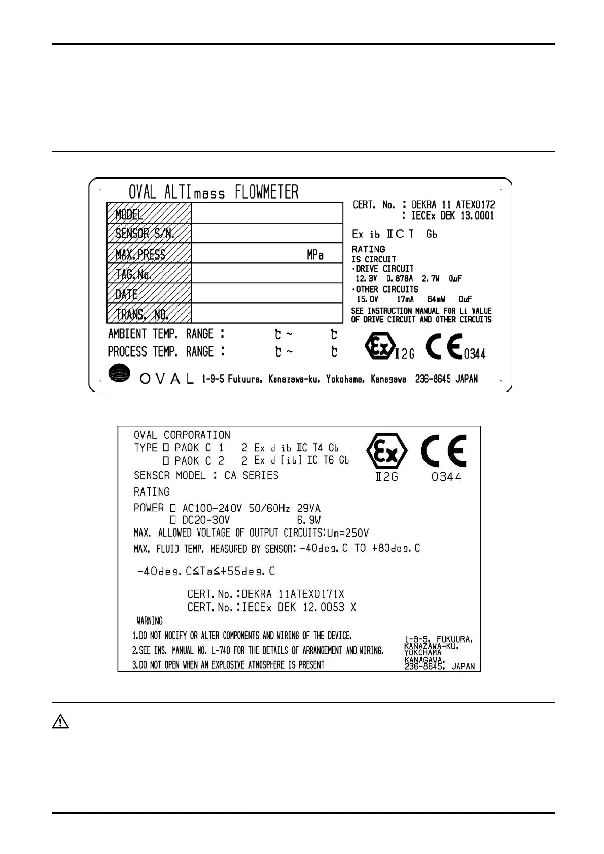 Oval ALTImass CA004 - 11. EX-INFORMATION; 11.1 Nameplates