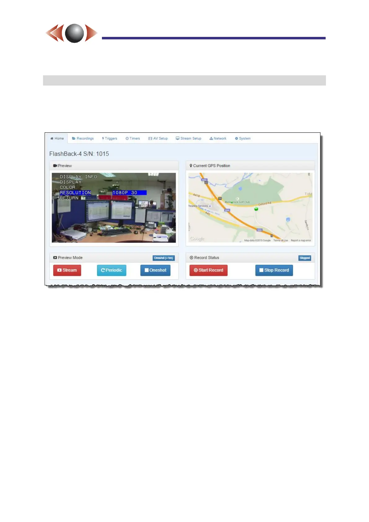 FlashBack-4’s webpage allows you to remotely access the unit. The Home page shows the