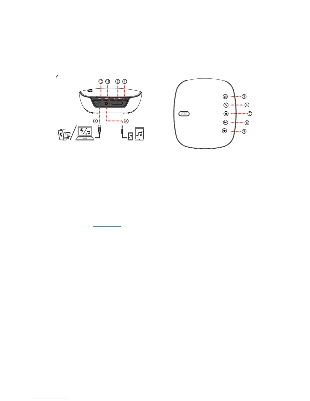 Micro USB Port ( #1 Support 5V/1A USB power adapter④ , #2 Support music download