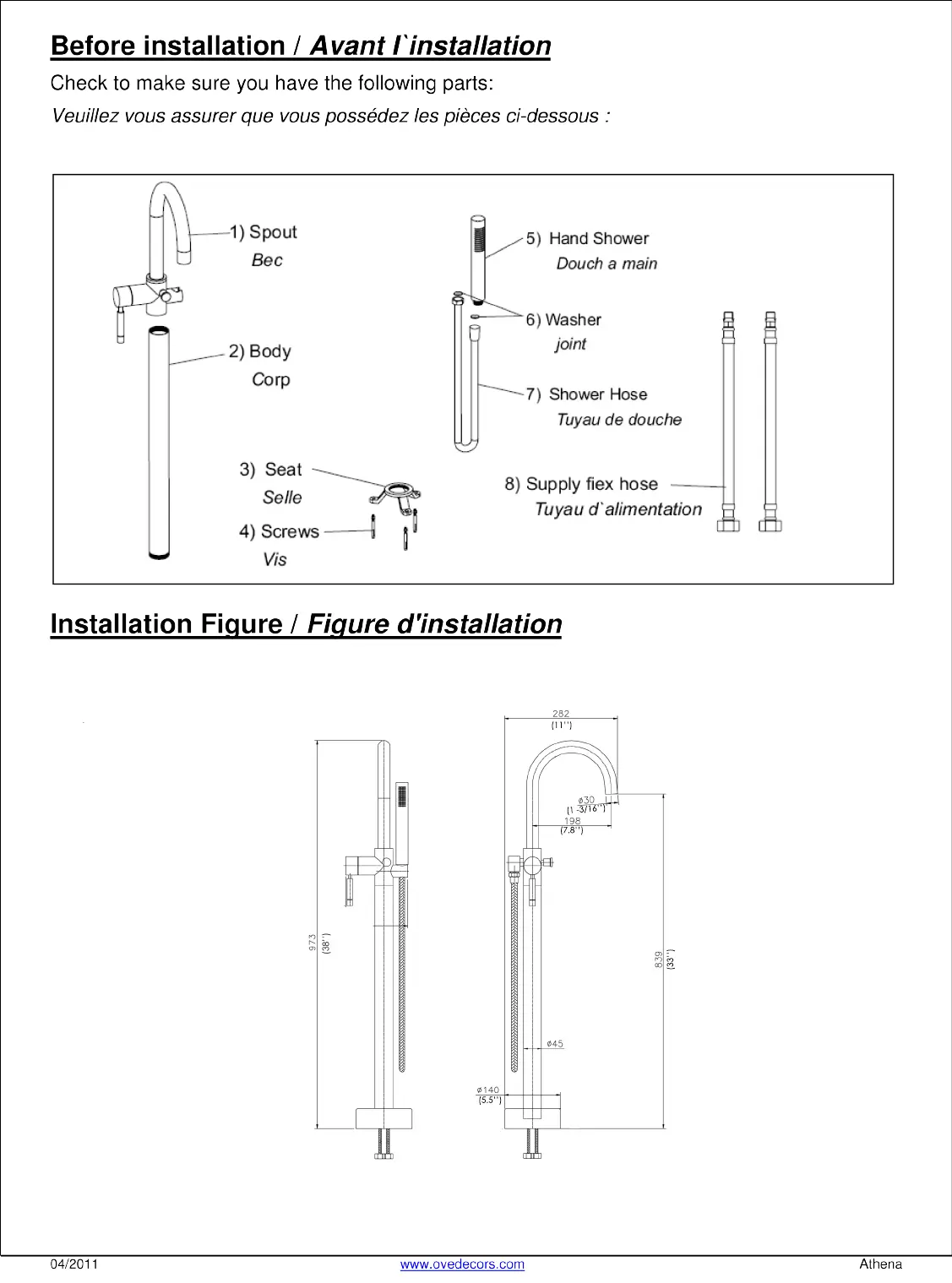 OVE ATHENA - Before Installation; Parts List; Installation Figure