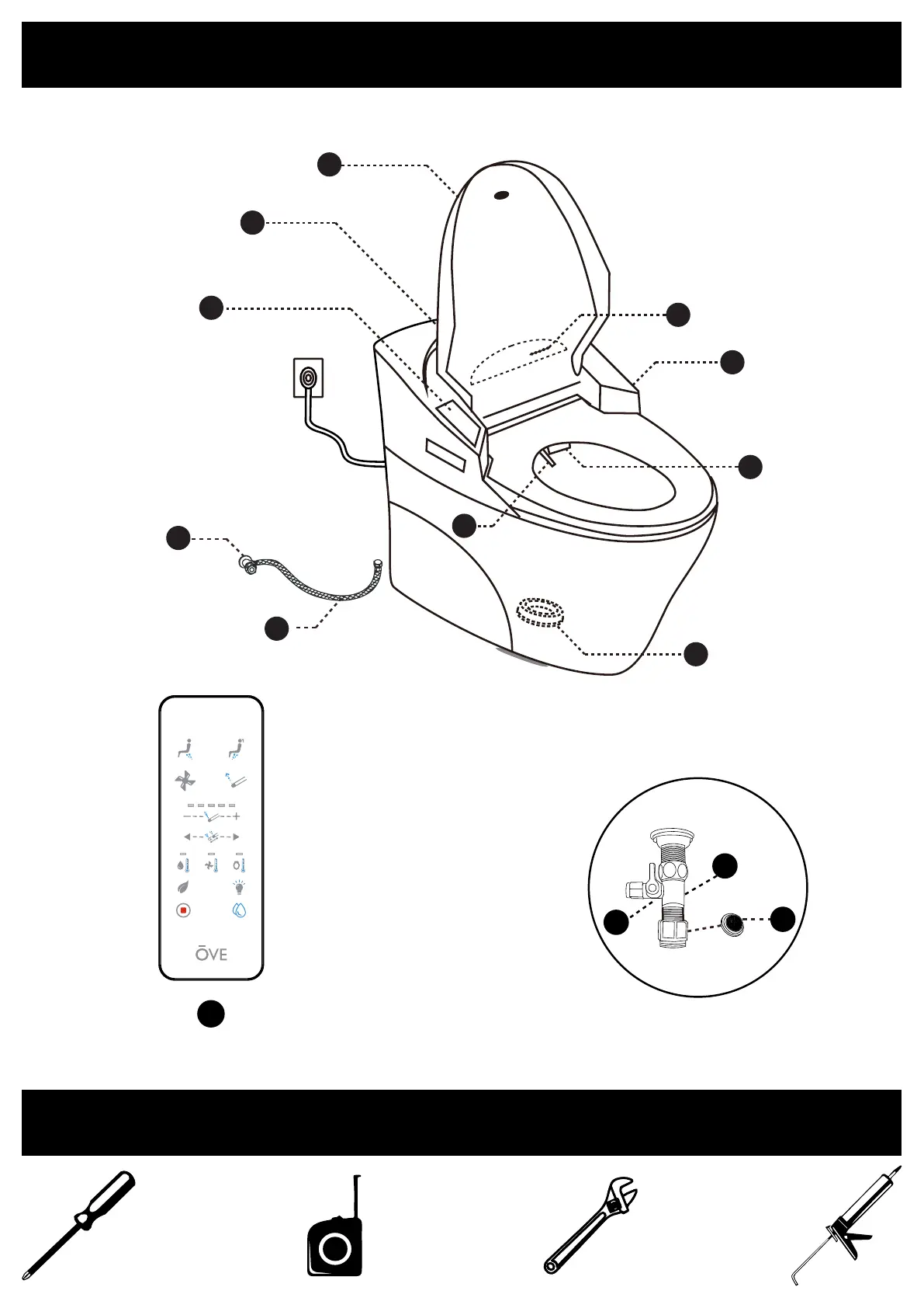 OVE SAGA - TOOLS REQUIRED (Not Supplied); Liste des Pièces; OUTILS REQUIS (Non Fournis); Lista de Piezas