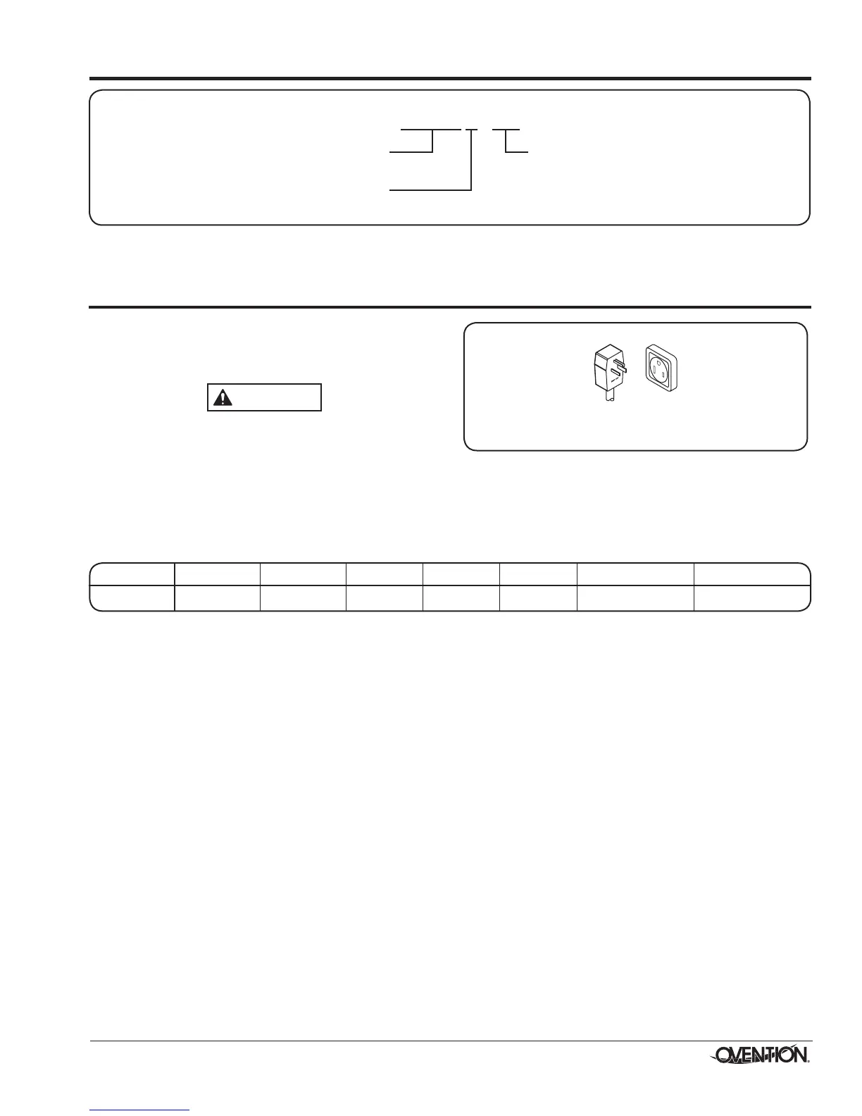 NOTE: Receptacle not supplied by Ovention.